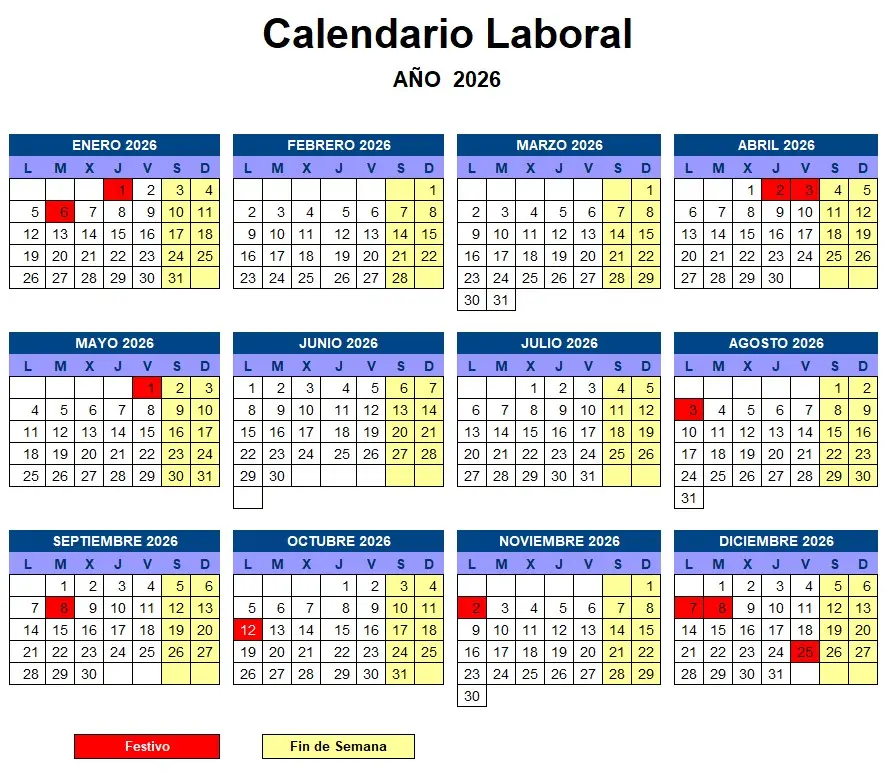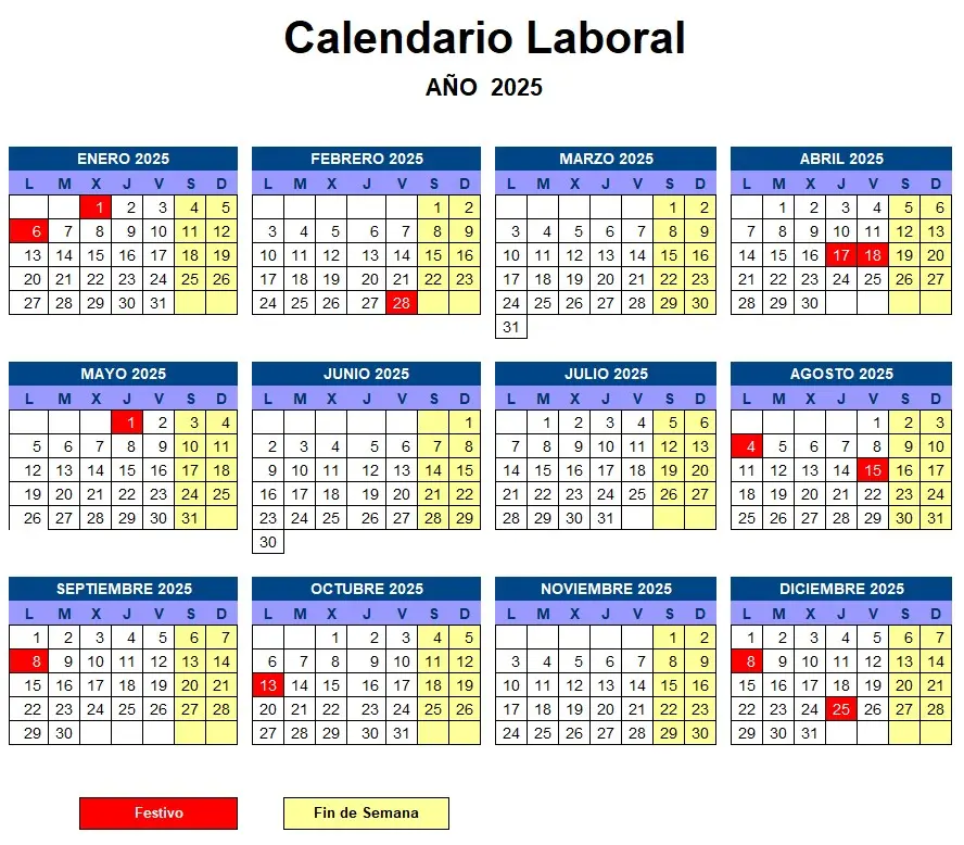 Nuestro calendario para saber cuando estamos disponibles para atenderles